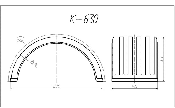 длина 1940 мм, радиус 630 мм, Применение -