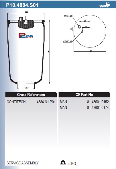 Купить Пневморессора P10.4884.S01 (без стакана) вы можете в компании АВТОГИГАНТ, оформив заказ в интернет магазине, или